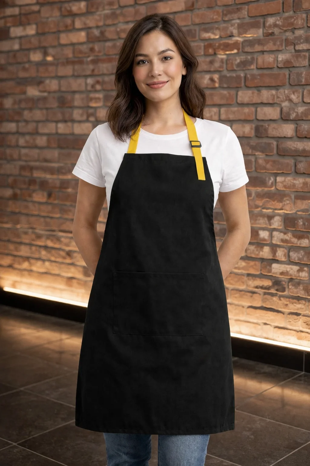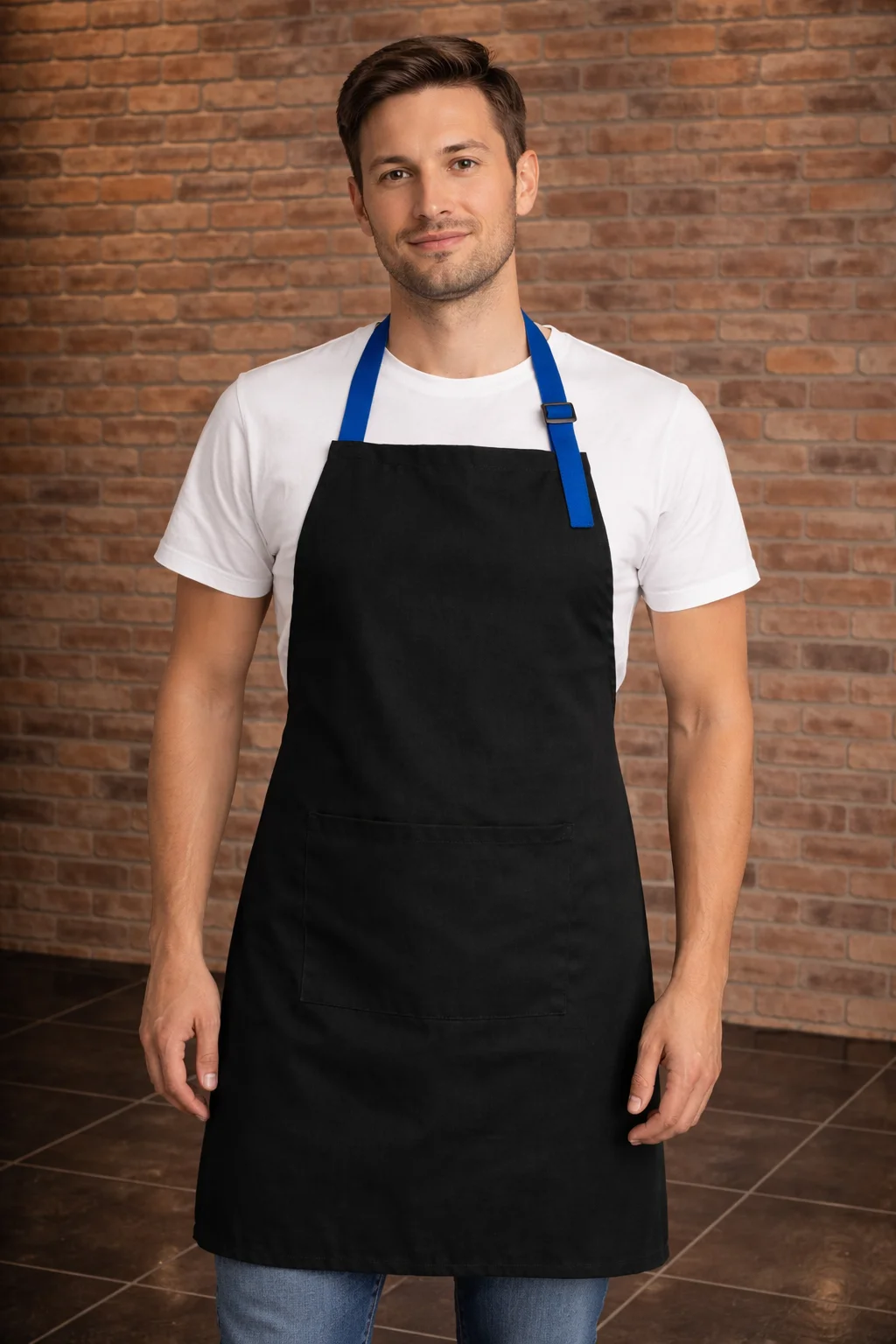 Fabricado en gabardina de 7 onzas, este delantal ofrece una estructura firme y una caída ordenada, siendo ampliamente utilizado en uniformes de cocina. Sus tirantes de colores permiten diferenciar equipos, aportar identidad de marca o simplemente darle un estilo más atractivo al uniforme.