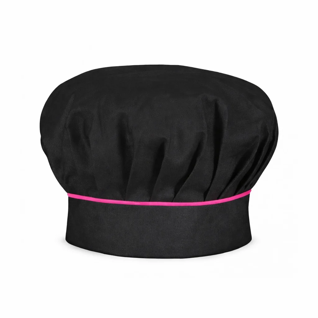 El gorro de cocina negro Línea Beauty es un complemento esencial para uniformes gastronómicos, ideal para restaurantes, cafeterías, cocinas, food trucks y atención a público. Su diseño moderno con detalle en fucsia aporta una imagen diferenciadora sin perder formalidad.
